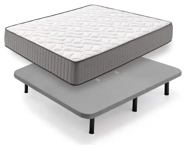 Colchón Viscoelástico + Base Tapizada Gris