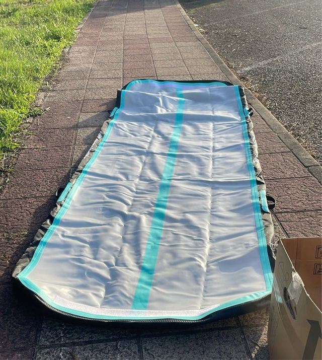 Colchoneta para gimnasia o ejercicios. - Diseño acolchado. - Tiras de sujeción. - Color blanco y azul.