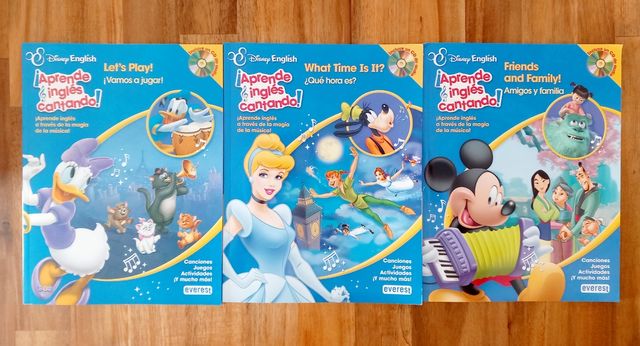 Cinco libros: ¡Vamos a jugar! ¿Qué hora es? Amigos y familia. Lugares. Todo sobre mi. Editorial Everest Inglés para niños.