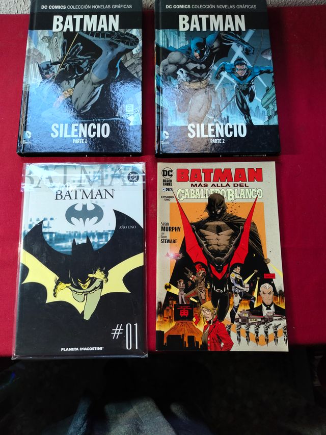 Titulos: Batman Silencio parte 1 y 2, Tapa Dura. Batman Mas alla del caballero blanco, tapa blanda. Batman año 1. Prestige. En estado excelente.