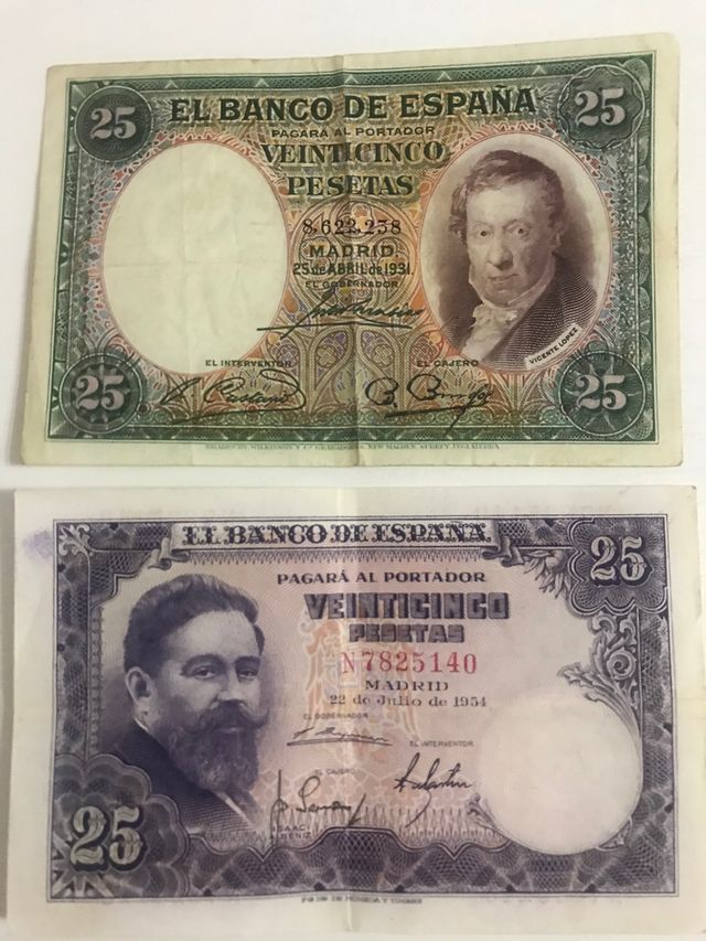 Coleccion de billetes antiguos en muy buen estado. 50 pesetas años 1928,1931, 1935 y 1954. 100 pesetas año 1928. 10 pesetas año 1935. 5 pesetas año 1935.