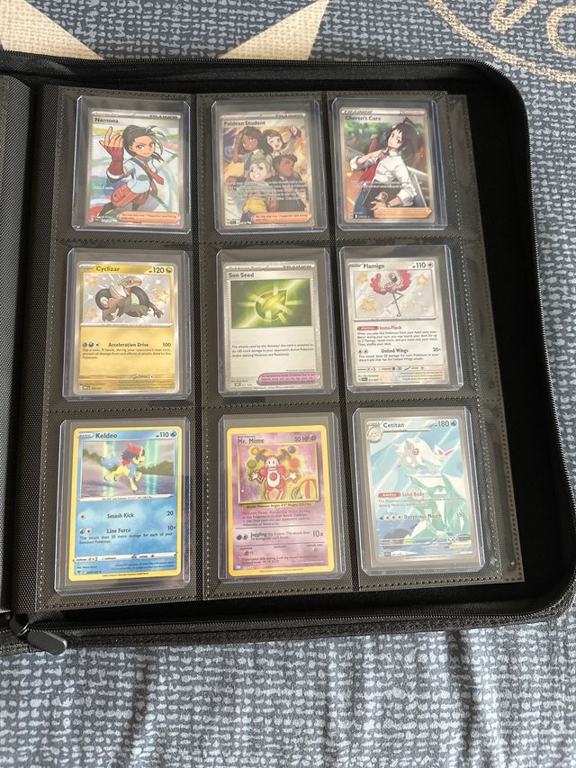 Conjunto de cartas Pokémon. -NO COMPRAR A 1€ -SE HACEN PACKS CON OTROS ANUNCIOS - Ninetales - Keldeo - Mr. Mime - Cyclizar - Cetitan - Flamigo - Paldean Student - Chareer's Care - Son Seed