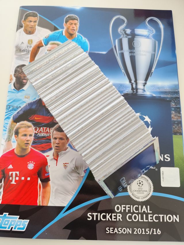 Colección completa cromos sin pegar Topps UEFA Champions League 2015 2016. Incluye el álbum plancha y los 623 cromos nunca pegados. Incluye cromos de Ronaldo y Messi.