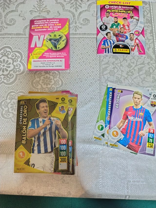 Detalles del productoEstán totalmente bien conservados. Hay muchas especiales incluyendo 3 Balones de oro ( Oyarzabal y 2 de Kounde) y un Momento de Aubameyang. También hay cromos de letras y check list.