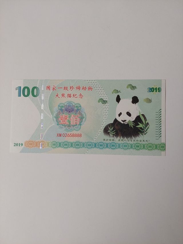 Bonito billete de Colección de China emitido en defensa del Gran Oso Panda. Son 100 yuan de 2019.
