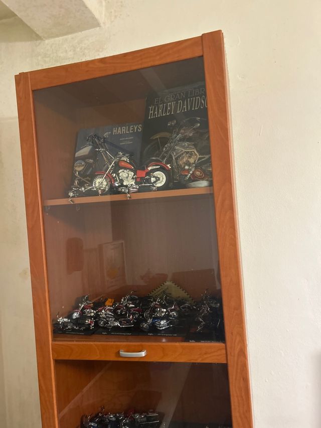 Colección de miniaturas de motocicletas Harley Davidson, ideal para coleccionistas. - Modelos detallados de motocicletas. - Incluye libros sobre Harley Davidson.