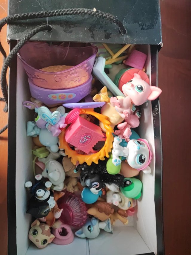 Lote de pequeños muñecos para coleccionar o jugar. - Incluye figuras de animales y accesorios. - Variedad de colores y diseños.