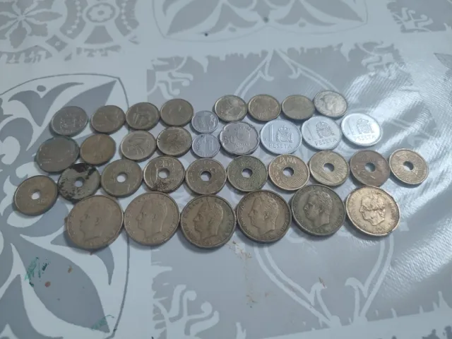 Detalles del productopesetas monedas antiguas variadas de colección con diseños diversos.