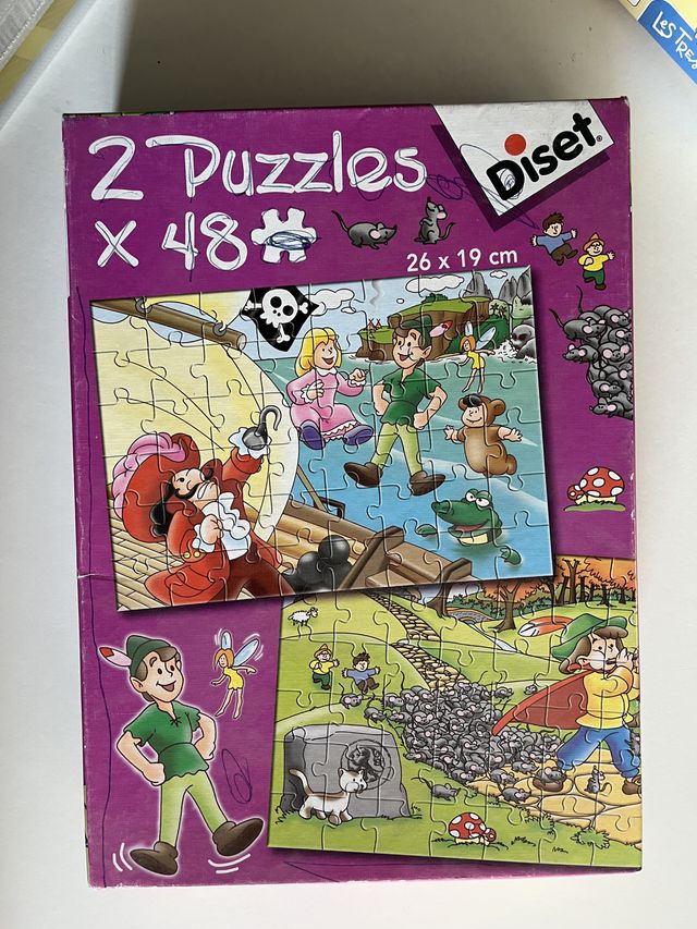 Detalles del productoSet de dos puzzles infantiles de la marca Diset, con temática de Peter Pan y el Flautista de Hamelín.