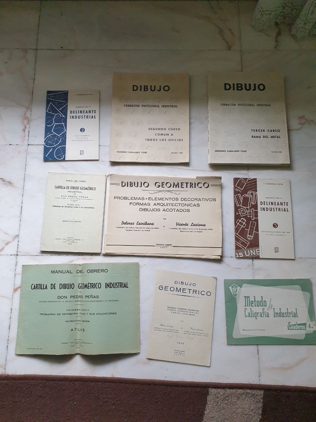 Detalles del productoSe vende colección relacionada con el dibujo geométrico y delineante de finales de los 50 principios de los 60. Una curiosidad para el que sea experto en la materia. En perfecto estado. La colección está formada por 9 cuadernos/libros como se aprecia en la foto.