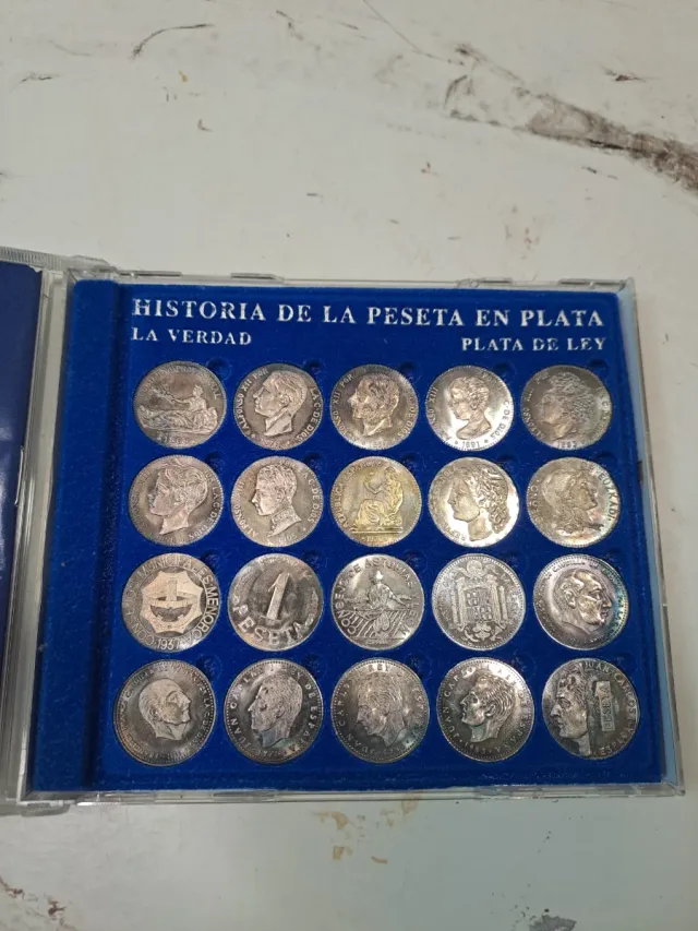Detalles del productoColección de monedas de la historia de la Peseta en plata de ley.