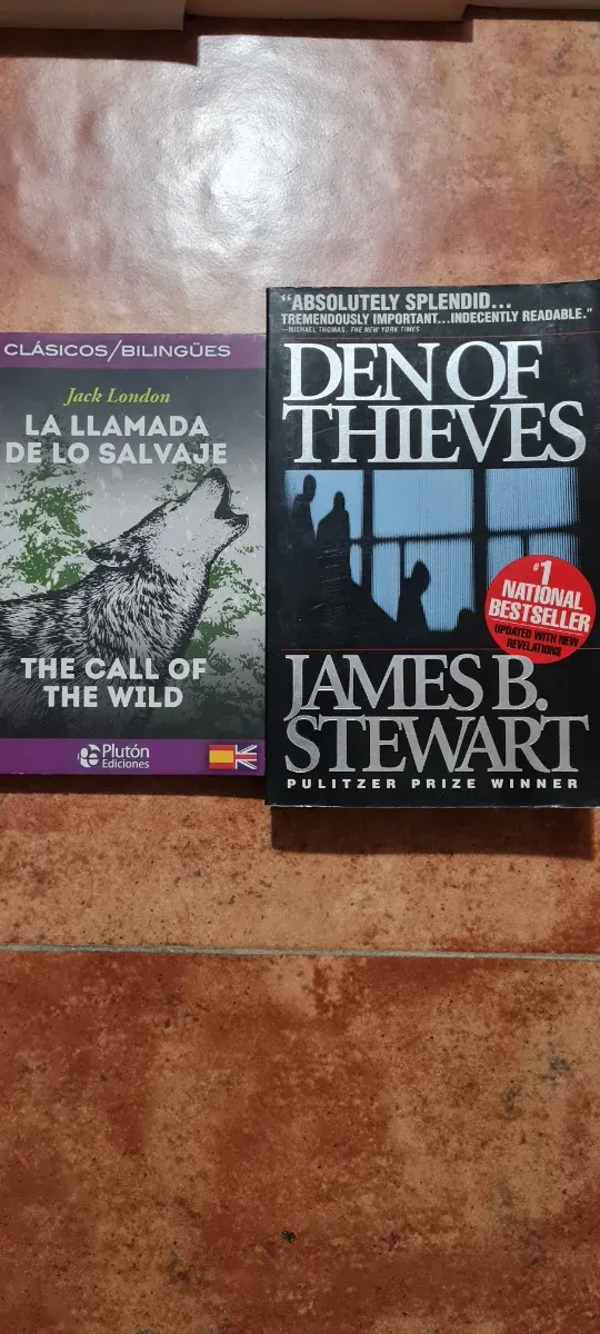 Dos libros de la colección Clásicos - La llamada de lo salvaje de Jack London.Bilingüe - Den of Thieves de James B. Stewart.