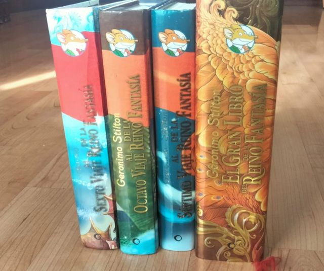 Colección de 4 libros de Geronimo Stilton,todos en un muy buen estado, pero hay algunas hojas pintadas a boli. Son de los que tienen páginas con olores distintos.