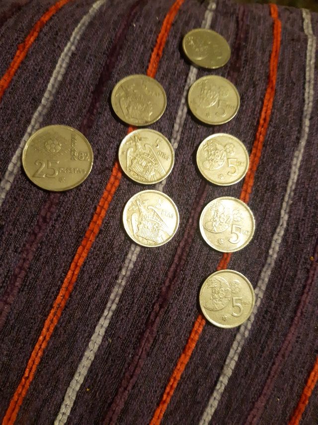 Detalles del productoConjunto de monedas de pesetas españolas.