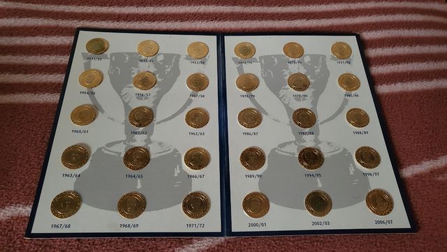 Colección monedas con baño de oro 30 ligas Real Madrid. La colección son 30 monedas. Estado bien