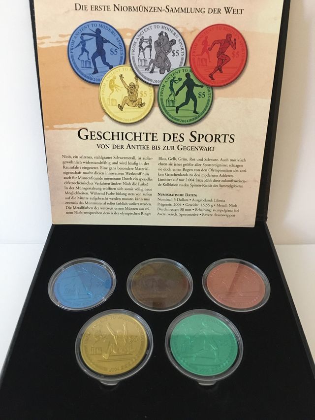 Detalles del productoColección 5 monedas de Niobio 2004 - Olimpiadas - Historia del deporte.