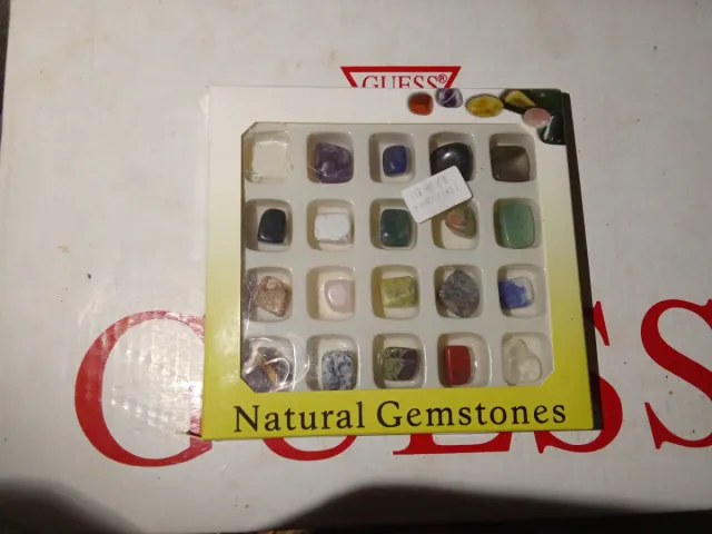 Set de piedras naturales coleccionables de la marca Guess. - Incluye 16 piedras de diferentes tipos y colores. - Presentadas en un estuche transparente.