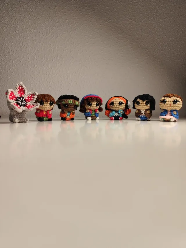 Detalles del productoConjunto de figuras de crochet inspiradas en Stranger Things. Incluye un Demogorgon y seis personajes.