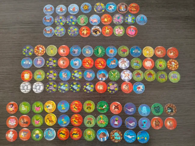 Colección de tazos de Pokémon de las series Tazos, Tazos 2 y Tazos 3 En estados variados Alguno plastificado para proteger su estado (se puede quitar fácilmente)