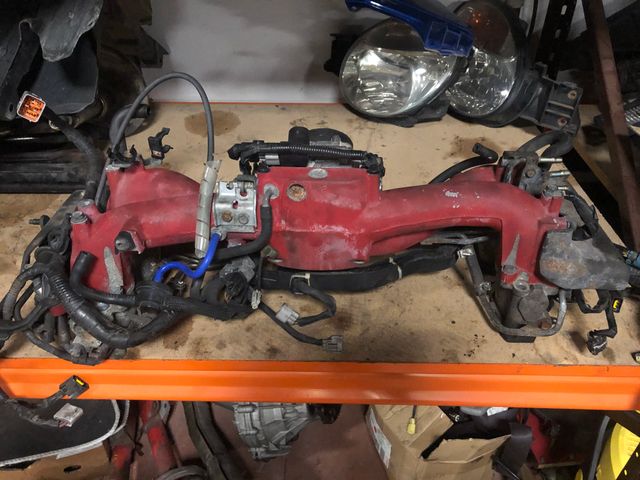 Detalles del productocolector de admisión original de impreza sti 2003, con sensores actuadores y inyectores listo para llegar y montar.