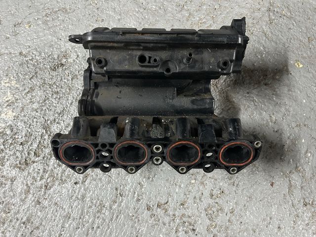 Colector de admisión para motor NFU. Pieza de plástico negro. - Diseño de múltiples tomas. - Anillos de sellado naranjas en las entradas.