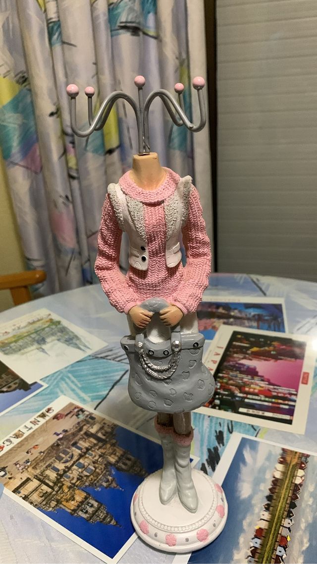 Colgador de collares figura mujer rosa
