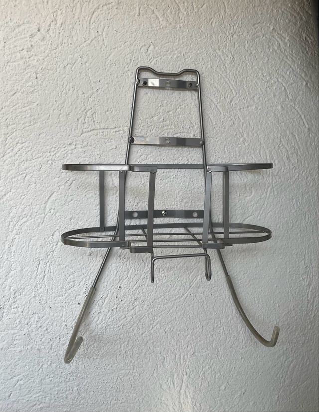 Detalles del productoTe ofrece la posibilidad de almacenar y tener organizados todos tus accesorios de planchado. Se atornilla a la pared.Puedes colgar tu tabla de planchar y almacenar tu plancha. Recogida en metro Francos Rodriguez (no envio).