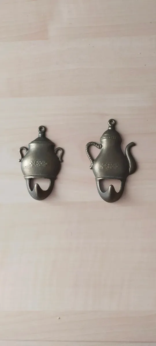 Detalles del productoSet de dos colgadores vintage con diseño de tetera y jarra, perfectos para dar un toque retro a tu cocina.
