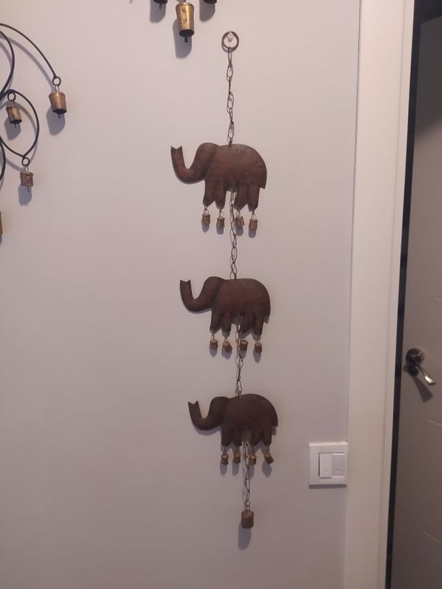 Colgante decorativo elefantes con campañillas en metal