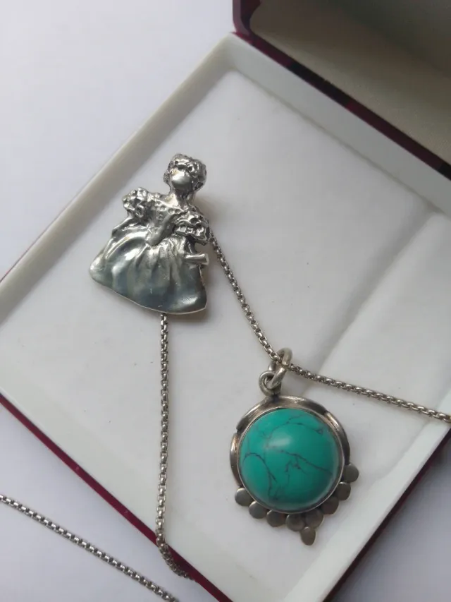 Colgante figura antigua y colgante turquesa.