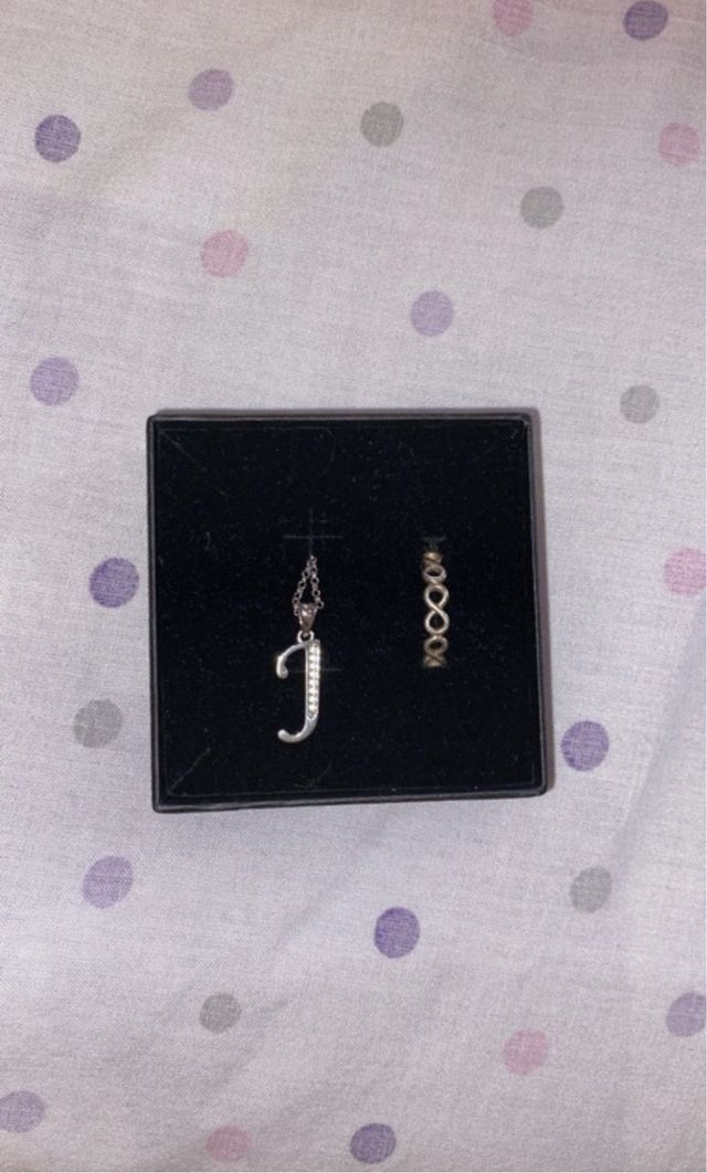 Colgante J y Anillo Infinito Plata