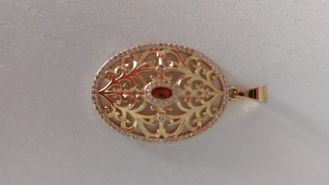 Colgante ovalado filigrana oro y rubí