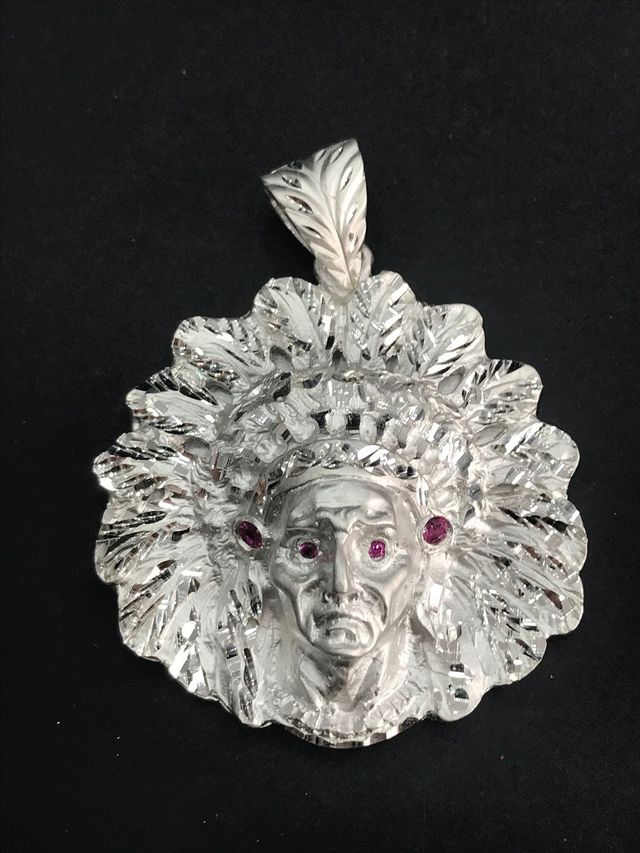 Detalles del productoColgante plata de ley 925 jefe indio grande 4 piedras Peso: 28.60gr.