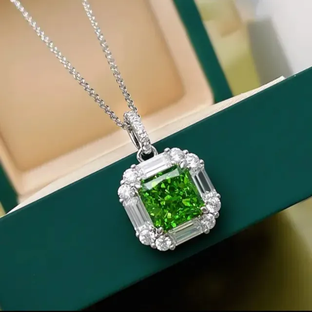 Colgante y Cadena Plata con Piedra Verde