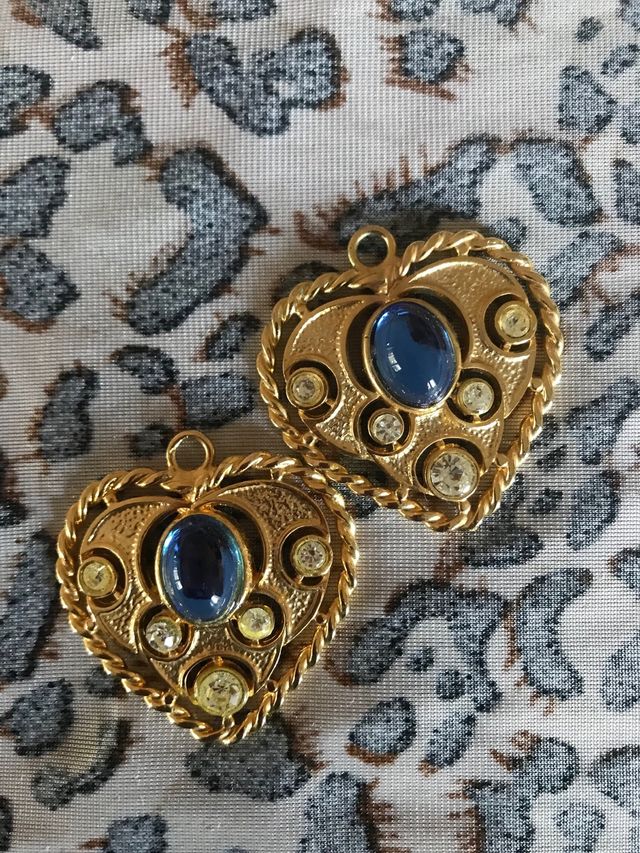Colgantes Corazón Oro con Piedras Azules y Blancas