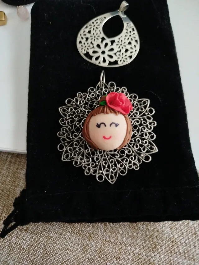 Colgantes plata con flor y cara