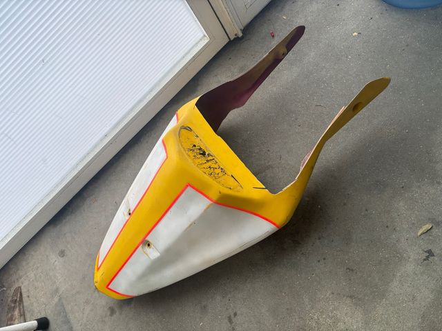 Colin de circuito para Suzuki GSXR K5. Pieza de estilo deportivo. PARA USAR CON ASIENTO DE SERIE - Color blanco y amarillo. - Detalles en rojo.