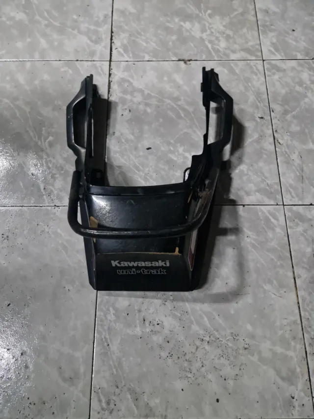 Colin para Kawasaki GPZ 400. Pieza de plástico negro con detalles plateados. - Logotipo Kawasaki uni-trak visible.