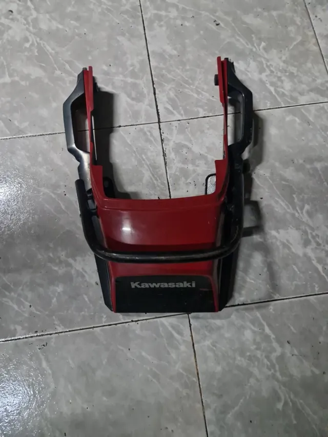 Colin para moto Kawasaki GPZ 400. Pieza de plástico rojo y negro con el logo de la marca. - Color rojo y negro. - Logo Kawasaki.