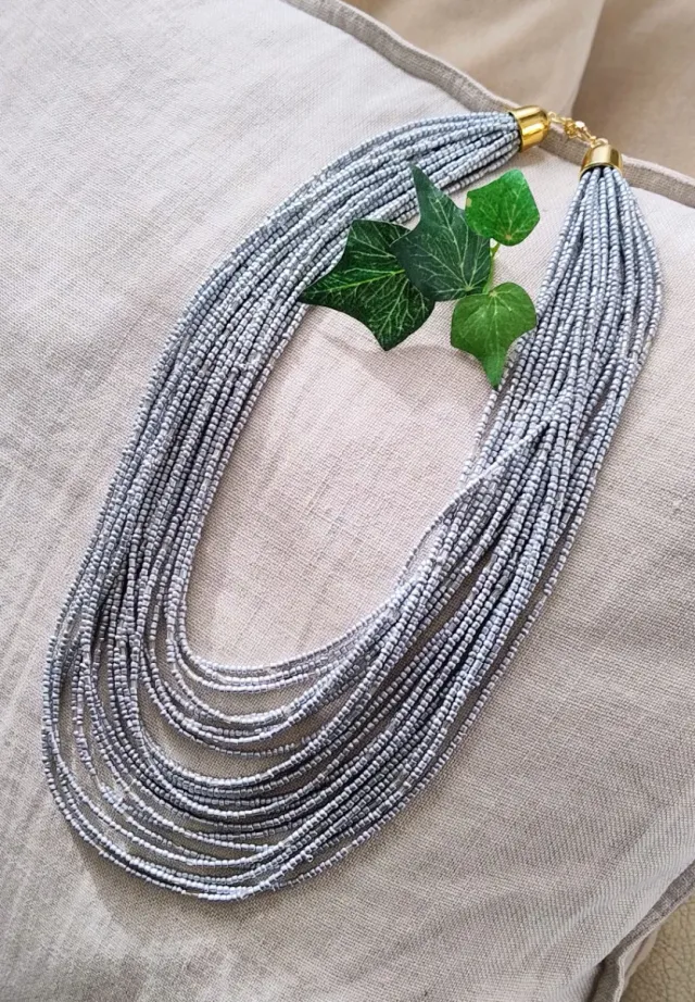 Collar abalorios plateados