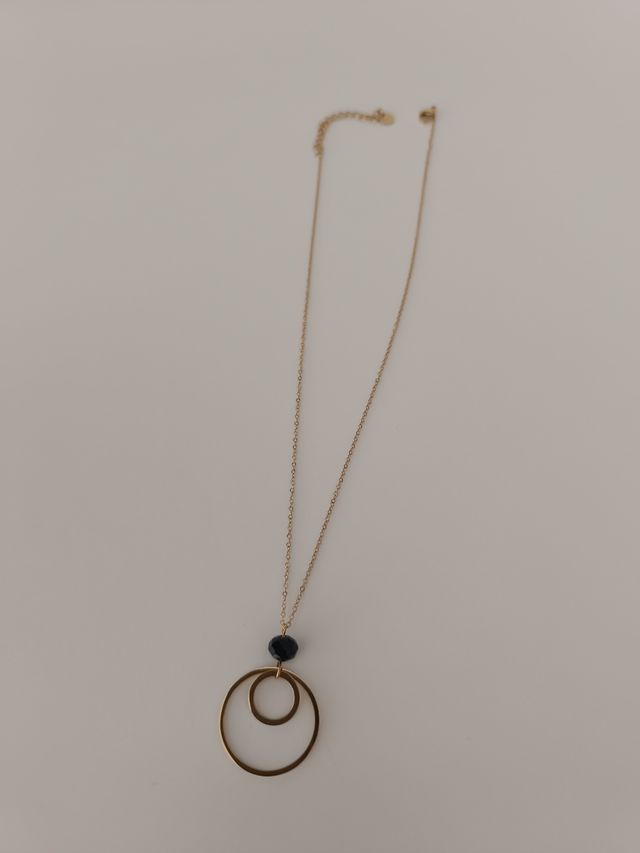 Collar Acero Bañado en Oro con Abalorio Negro