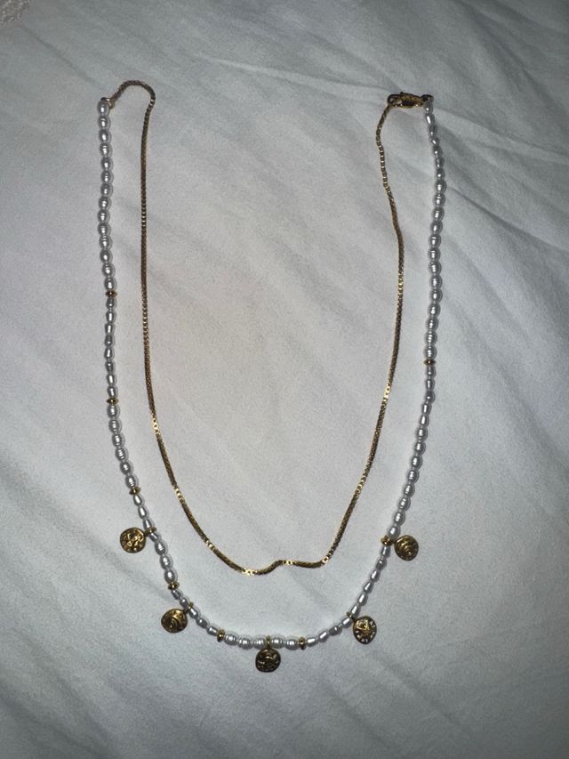 Collar Bimba y Lola perlas y monedas oro