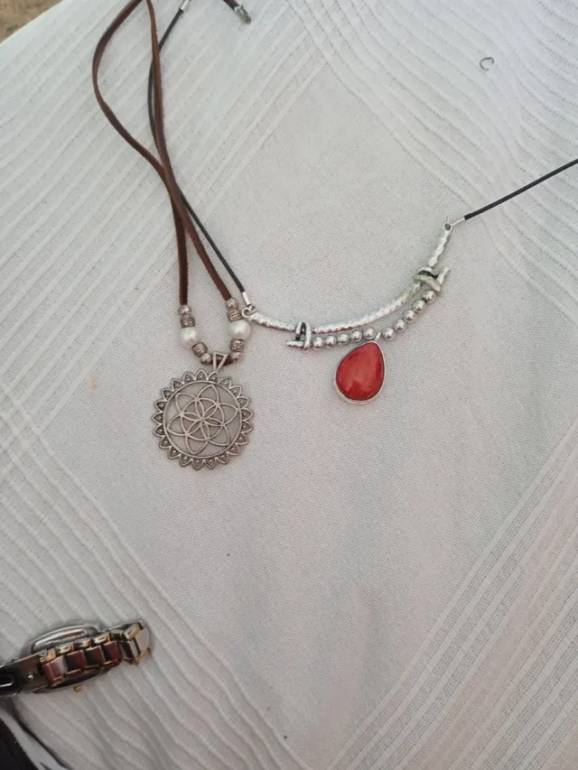 Collar bisutería plata y piedra roja