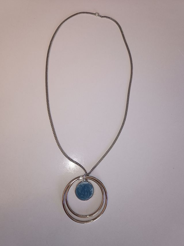 Collar con Abalorio Azul y Aro Plateado