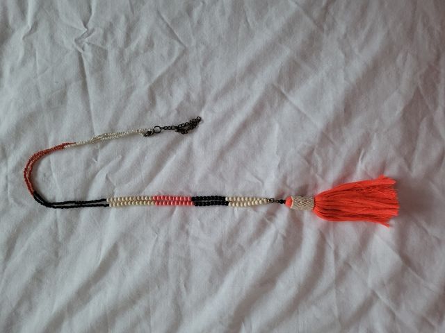 Collar con borla - Blanco & Naranja