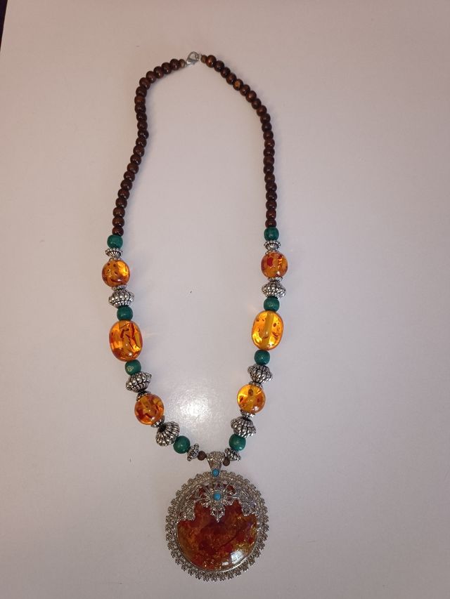Collar con colgante de ámbar y cuentas
