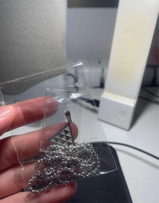 Collar con colgante triángulo plateado