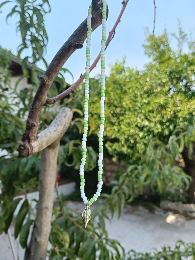 Collar con cuentas verdes y blancas