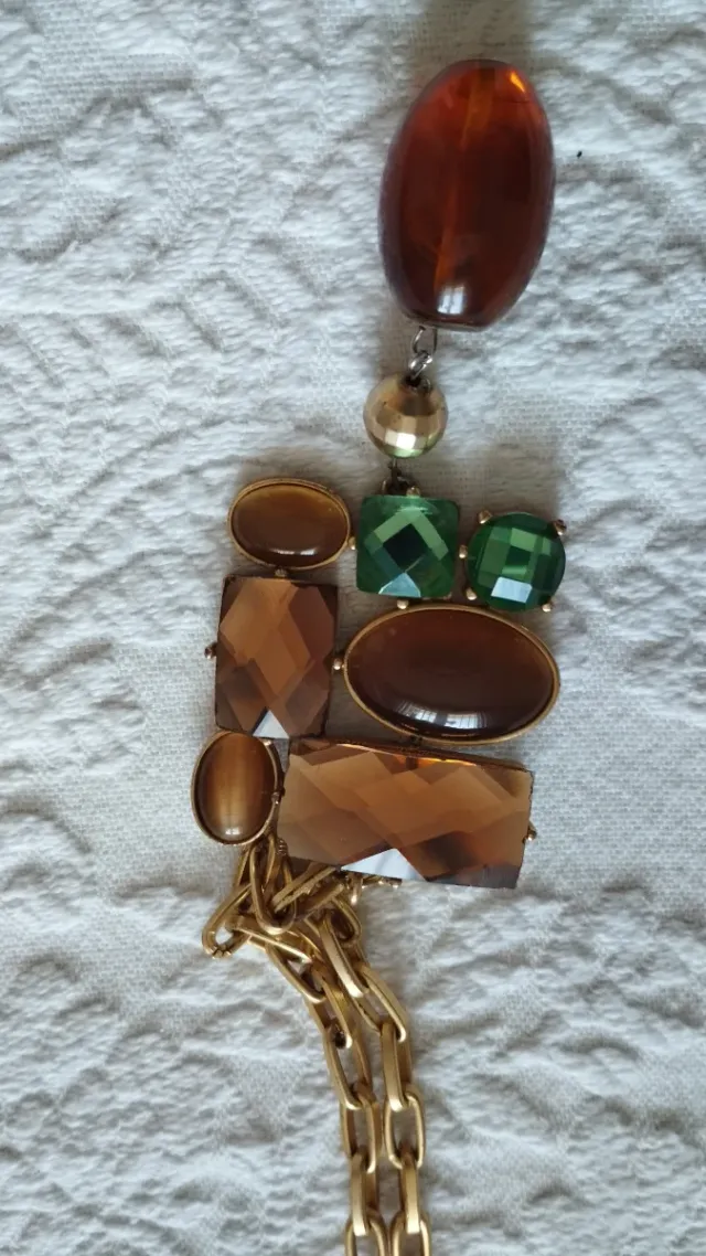 Collar Cortefiel bisutería marrón y verde