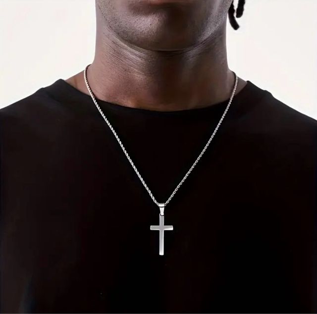 Collar Cruz Acero Inoxidable Hombre Plata
